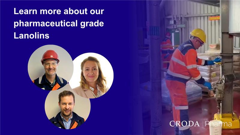 Croda has extensive expertise in lanolin purification, and has been refining wool grease to make lanolin, and lanolin derivatives, for 100 years. Our founders, the chemist Mr Dawe and the entrepreneur Mr Crowe, began processing wool grease in Rawcliffe Bridge, a small village in the north of England, in 1925. Join us behind the scenes in our lanolin manufacturing video, where we reveal how raw wool grease is expertly refined into high-purity lanolin — a versatile ingredient trusted in pharmaceuticals formulations.