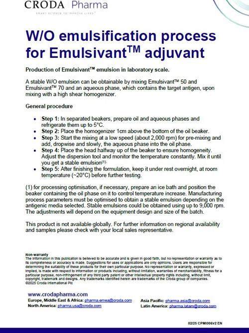 W/O emulsification process for Emulsivant™ adjuvant