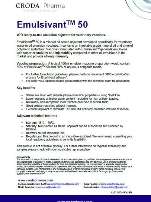 Emulsivant™ range: Emulsion adjuvants for veterinary vaccines